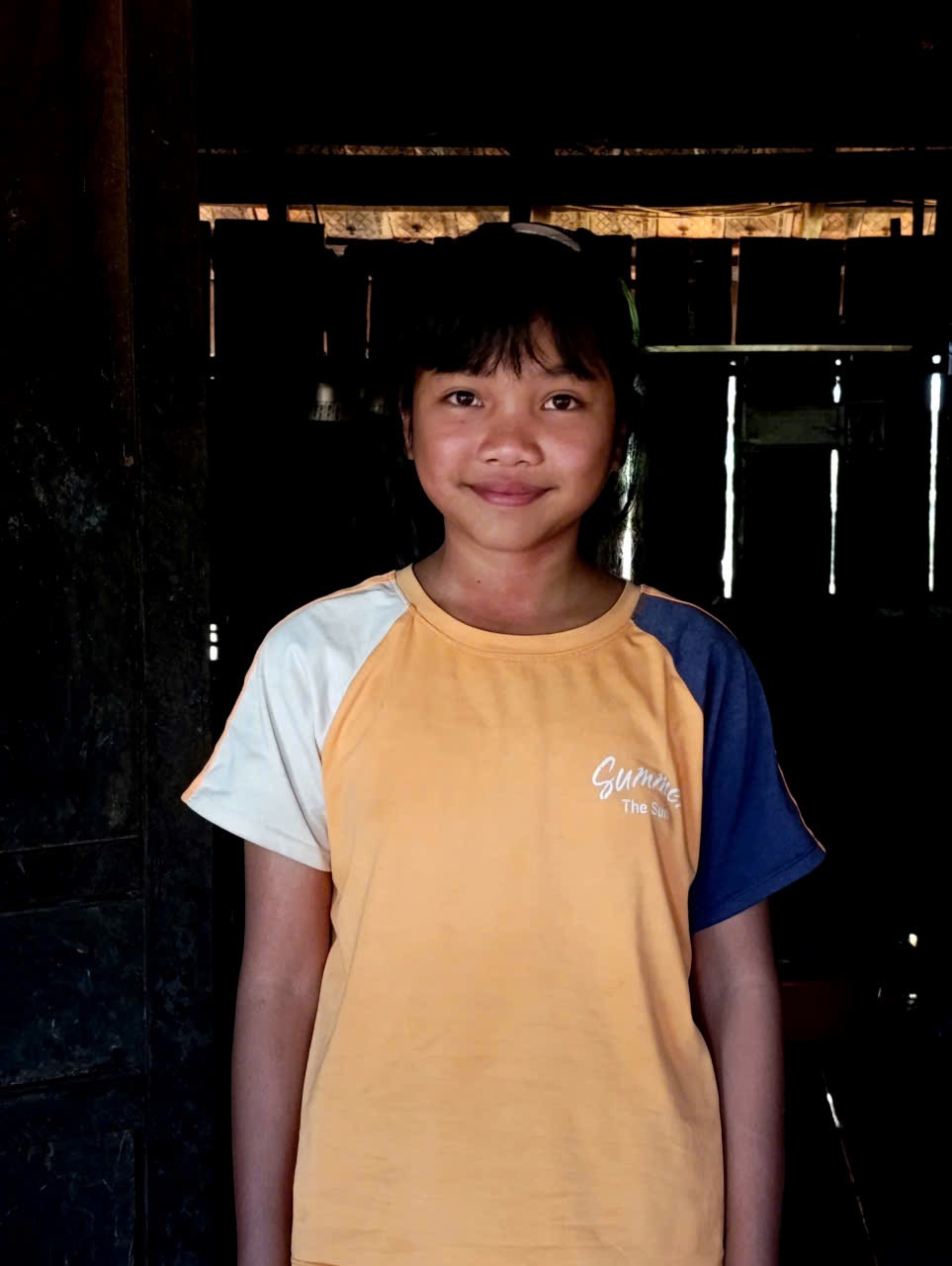 Je m’appelle San Qui, j’ai 12 ans et je suis en classe de 6e. J’appartiens à l’ethnie Jrai. Ma mère m’a abandonnée quand j’étais bébé et mon père est décédé. Je vis avec mes grands-parents, mon oncle et mes deux cousins, âgés de 15 ans et 9 ans. Parfois, ma mère vient me rendre visite, mais ce sont mes grands-parents qui s’occupent de moi au quotidien.